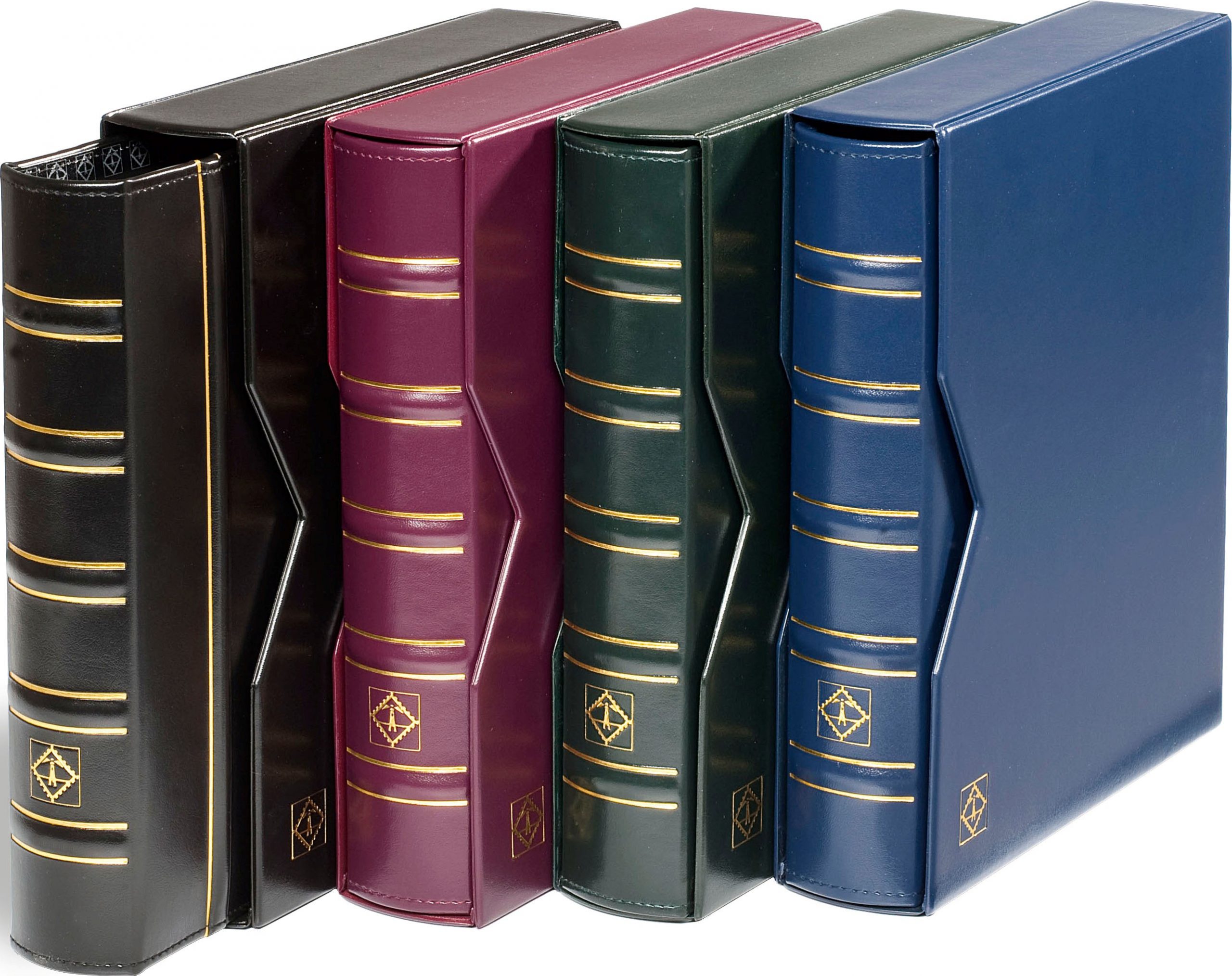 Ils se présentent sous la forme de livres cartonnés renfermant des feuilles de papier très fort ou de carton, sur lesquelles des bandelettes de papier cristal, de cellophane, de toile ou de carton, sont collées dans leur partie inférieure et dans le sens de la largeur. Vous trouverez une large gamme d’albums et de classeurs de tous les formats pour ranger les timbres.