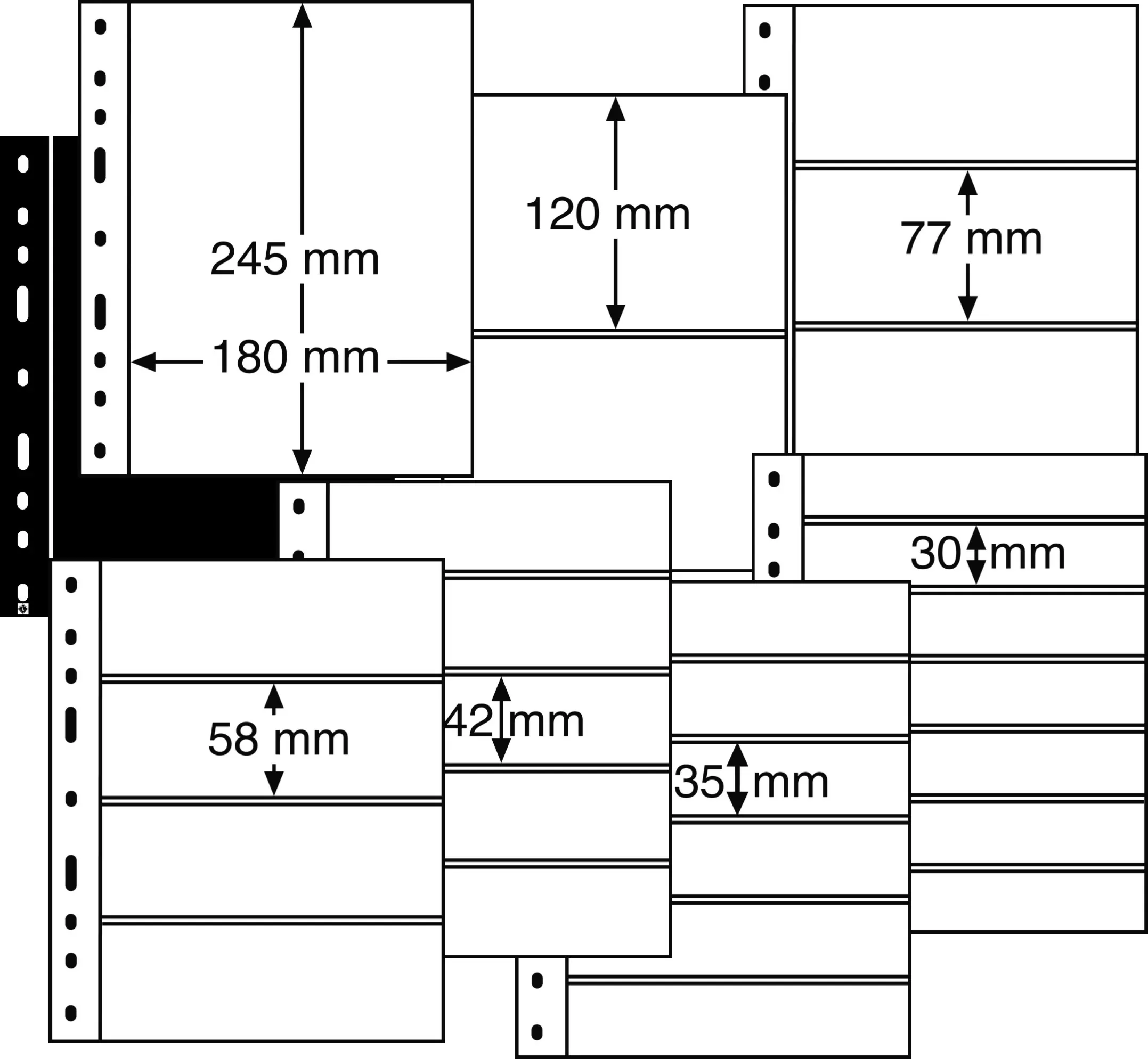⇒ Avec des feuilles mobiles noires pour des classeurs spécialement étudiés : on peut alors disposer les timbres selon sa fantaisie et son propre goût personnel, mais le choix des bandes (1 bande, 2 bandes, 3 bandes, 4 bandes, 5 bandes, 6 bandes et 7 bandes) demande beaucoup de soin si les timbres sont de format différent.